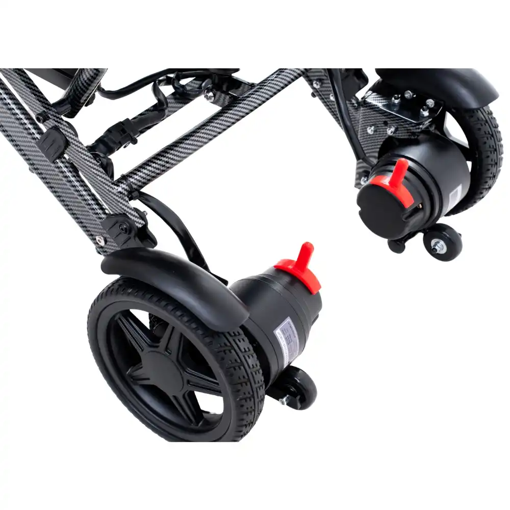 Ön ve arka süspansiyon sistemi, engebeli zeminlerde dahi titreşimi minimuma indirerek konforlu bir sürüş sağlar. Devrilme önleyici arka tekerlekleri sayesinde güvenliği artırılmıştır. Elektrikli ve manuel mod arasında geçiş yapılabilir, bu da sandalyeyi her ortama uyumlu hale getirir.
