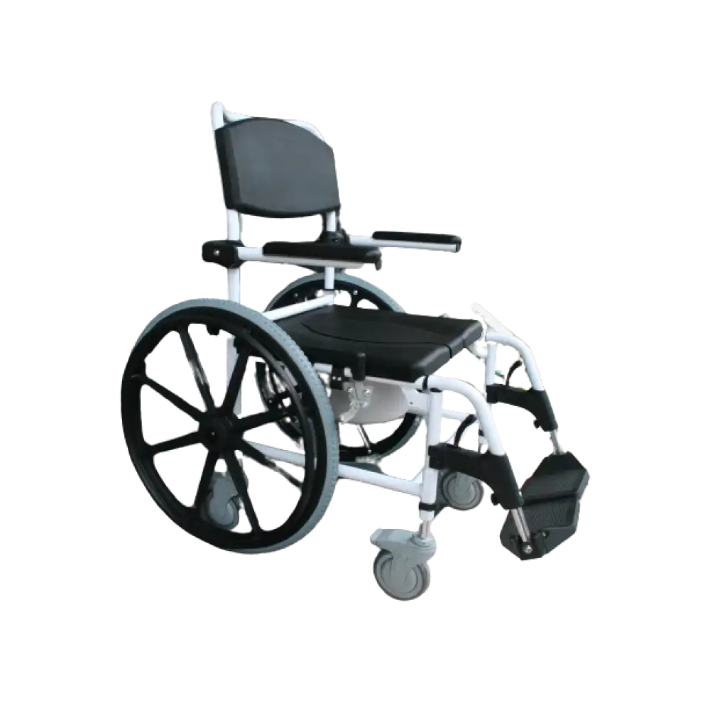 Hem iç mekan hem de dış mekan kullanımına uygun olan Poylin P617 Banyo ve Tuvalet Sandalyesi, alüminyum gövde yapısı ile son derece dayanıklı bir modeldir. 24" boyutundaki arka ve 5" boyutundaki ön tekerlekleri ile son derece konforlu bir sürüş sağlayan Poylin P617 klozetli tekerlekli sandalye son derece konforlu ve pratik banyo tuvalet sandalyesi modelleri arasında yer almaktadır. Anti bakteriyel döşemesi sayesinde hem tuvalet kullanımı sonrası hem de uzun süreli kullanımlardan kaynaklanabilecek bakteri oluşumlarının önüne geçen Poylin P617 lazımlıklı tekerlekli sandalyenin yumuşak oturma yeri kaymaya engel olup yüksek konforda tasarlanmıştır. Yukarıya doğru hareketli kolçaklara sahip olan Poylin P617 banyo tuvalet sandalyesi bu sayede kullanıcının araba veya yatak gibi alanlara yandan transferini kolaylaştırmaktadır. Talep edilmesi durumunda; ilave olarak satın alabileceğiniz küçük arka tekerlekleri ile 24 inç lik arka tekerlekleri çıkartarak en dar alanlarda dahi kullanılabilecek tekerlekli sandalye haline gelebilmektedir.Çıkartılabilir ayaklıklar ve bas-çıkart tekerleklere de sahip olan Poylin P617 banyo tuvalet sandalyesi böylece depolama ve taşımayı oldukça kolaylaştırmaktadır.