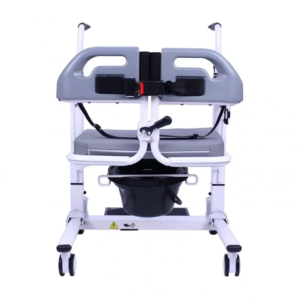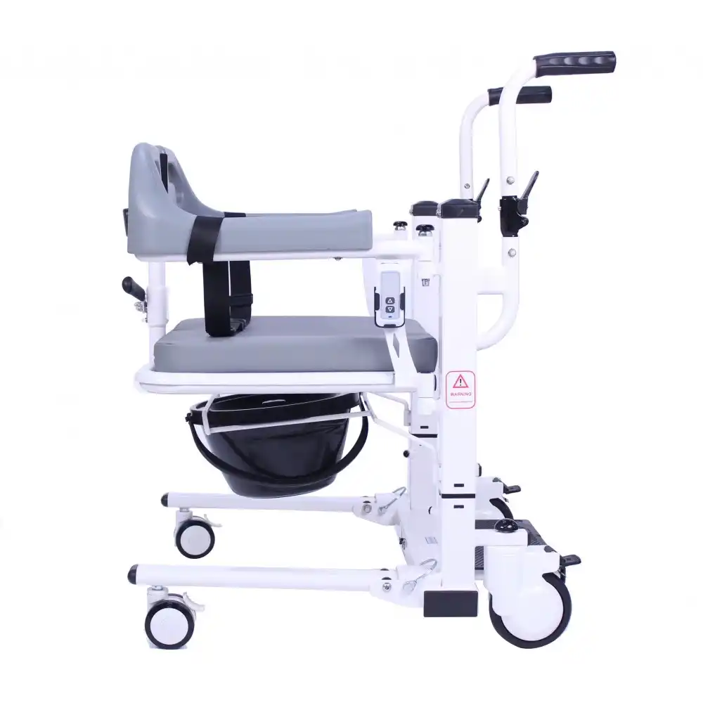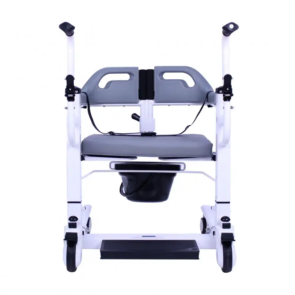 Poylin P771 Elektrik Kontrollü Ayarlanabilir Tuvalet Tekerlekli Sandalyesi, yürüme zorluğu çeken veya yürüme engeli olan kullanıcıların transferini sağlamakta ve tuvalet ihtiyaçlarını gidermekte son derece işlevsel bir modeldir. Hem yataktan hem de tekerlekli sandalyeden transferi kolay bir şekilde mümkün kılan Poylin P771 Tuvalet Özellikli Elektrikli Transfer Sandalyesi , elektrik sistemi sayesinde rahatlıkla yükseltilip alçaltılabilmektedir. 40 cm ve 60 cm arasında ayarlanabilir yüksekliği olan model, her klozete rahatlıkla yanaşabilmektedir. Ayrıca sahip olduğu çıkartılabilir ve kolay temizlenebilir lazımlığı sayesinde kullanıcısının hayatını oldukça kolaylaştırmaktadır. İç mekan kullanıma oldukça uygun olan Poylin P771 Tuvalet Özellikli Elektrikli Transfer Sandalyesi , ergonomik minderi sayesinde oldukça konforludur ve ev içerisinde tekerlekli sandalye yerine de rahatlıkla kullanılabilir. Çelik gövde yapısı sayesinde oldukça dayanıklı olan model, 50 cm olan oturma yeri genişliği sayesinde birçok kullanıcı tarafından tercih edilebilmektedir. 5" arka ve 3" inç ön tekerleklere sahip olan Poylin P771 Tuvaletli Elektrikli Transfer Sandalyesi, basit bir şekilde kilitlenebilir tekerlekleri sayesinde kullanımı son derece kolaydır. Katlanabilir refakatçi tutma yerleri sayesinde banyo esnasında da kolaylık sağlayan model 120 kg taşıma kapasitesine sahiptir.