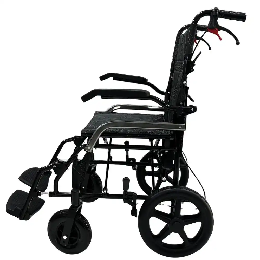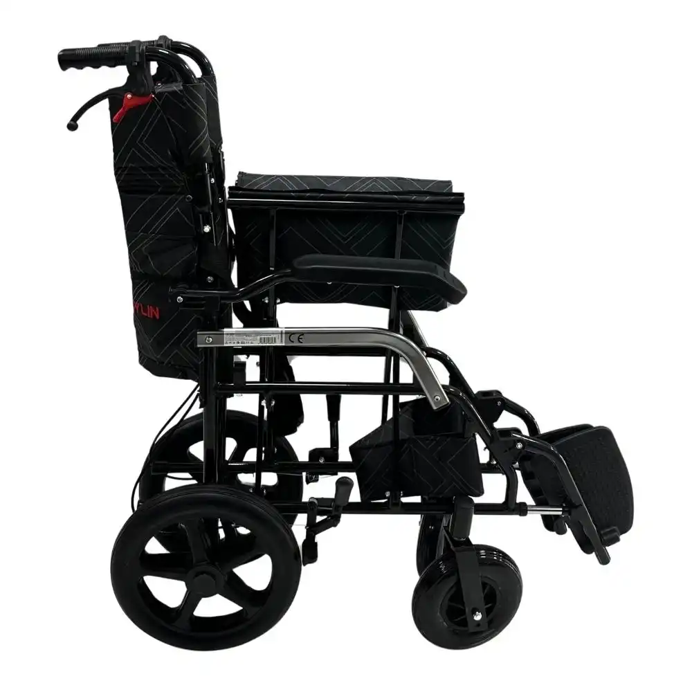 Emniyet kemeri, manuel fren sistemi ve refakatçi frenleriyle üst düzey güvenlik sunan bu model, kullanıcı ve refakatçiye güvenli bir deneyim sağlar. Anti bakteriyel özel kumaşı sayesinde hijyenik bir kullanım sunar; uzun süreli oturmalarda terleme yapmaz, kolayca temizlenebilir.