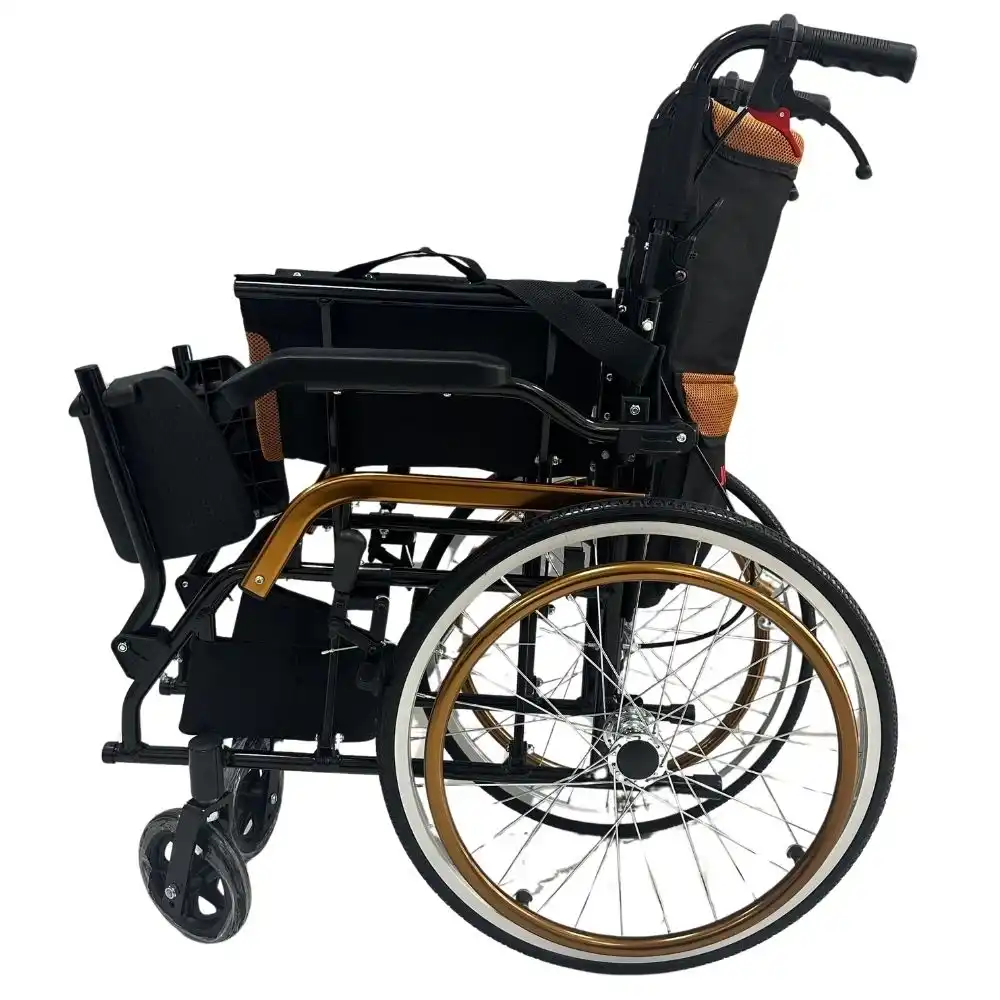 Poylin P807 Orta Tekerli Refakatçi Tekerlekli Sandalye modeli hem iç hem de dış mekan kullanımına uygun olup, farklı kullanım yerleri için farklı birden fazla ürüne olan ihtiyacı ortadan kaldırır. Alüminyum gövde yapısına sahip olan Poylin P807 Refakatçi tekerlekli sandalye oldukça dayanıklı bir tekerlekli engelli sandalyesi olup toplamda 11.5 kilogram ağırlığına sahiptir. 100 kilogram taşıma kapasitesine sahip olan Poylin P807 alüminyum tekerlekli sandalye son derece kompakt bir tekerlekli sandalye modeli olup, taşıma ve depolaması oldukça kolaydır. En küçük bagajlara bile sığabilecek boyutlara katlanabilen Poylin P807 hafif tekerlekli sandalye, emniyet kemerine ek olarak refakatçi freni ile de son derece güvenli bir modeldir. Hareketli kolçak yapısına sahip olan Poylin P807 tekerlekli engelli sandalyesi bu sayede kullanıcının araba veya yatak gibi alanlara tekerlekli sandalyenin yan taraflarından transferini mümkün kılıp, kolaylaştırmaktadır. Ayrıca sırt kısmı da katlanabilir olan Poylin P807 Refakatçi tekerlekli sandalyesi son derece pratik bir model olmasının yanı sıra ekonomik tekerlekli sandalye fiyatlarına sahiptir.